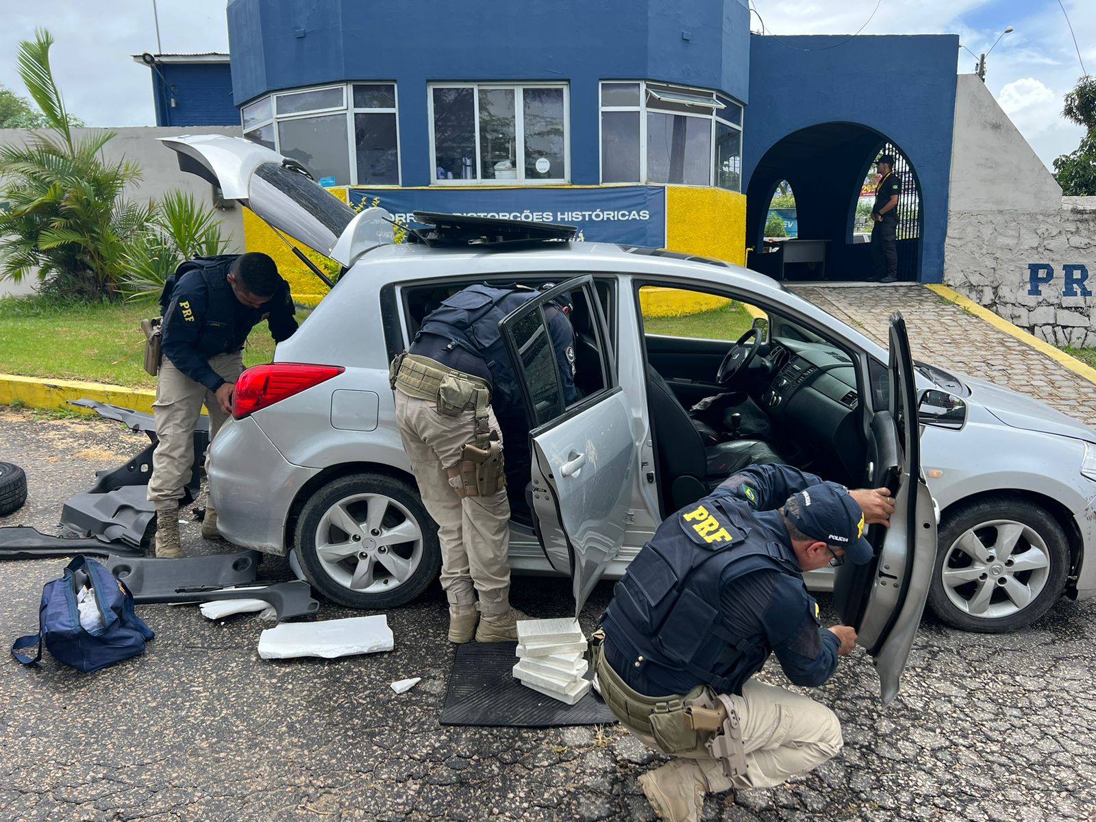 O cão farejador entrou em ação e indicou que havia alguma substância entorpecente escondida em um fundo falso do carro. Os policias então acessaram o assoalho do veículo e encontraram seis tabletes de cocaína, avaliados em cerca de R$1 milhão, além de 42 gramas de maconha.
