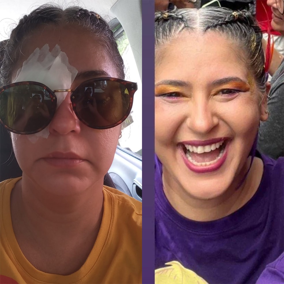 Eduarda Casanova e Mayara Santana tiveram problema nas córneas após uso de pomada capilar — Foto: Eduarda Casanova/Arquivo pessoal/Mayara Santana/Arquivo pessoal