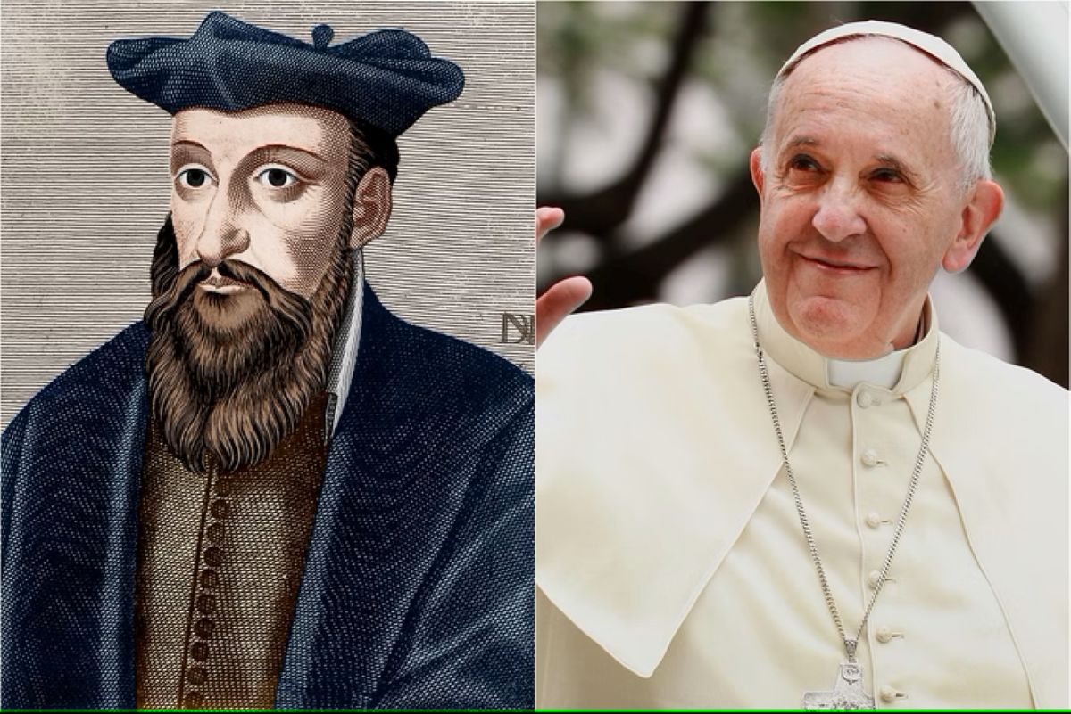 Ensaio publicado em 1555 pelo astrólogo francês Michel de Nostredame fala sobre a morte de um papa "muito idoso", seguida do enfraquecimento da Igreja.