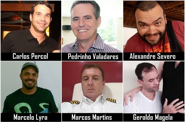 Além de Eduardo Campos, morreram no desastre: Alexandre Severo e Silva, fotógrafo; Carlos Augusto Leal Filho, assessor; Pedro Valadares Neto, assessor e ex-deputado federal; Marcelo de Oliveira Lyra, cinegrafista; e os pilotos Geraldo Magela Barbosa da Cunha e Marcos Martins.