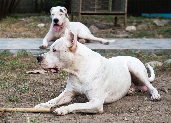 Dogo Argentino: criado para caça, proibido devido à postura musculosa e agressividade.