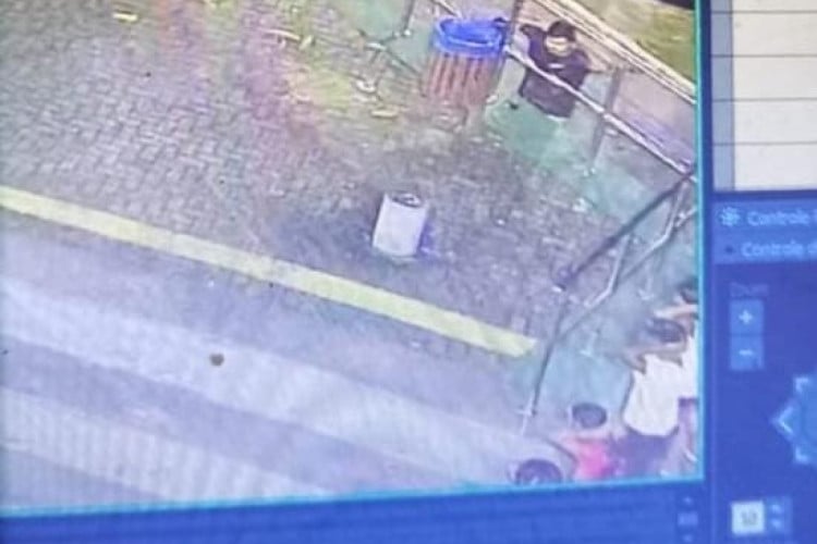 Legenda: Câmera de vigilância registrou momento em que homens foram enfileirados e mortos em praça Foto: Reprodução/Redes Sociais
