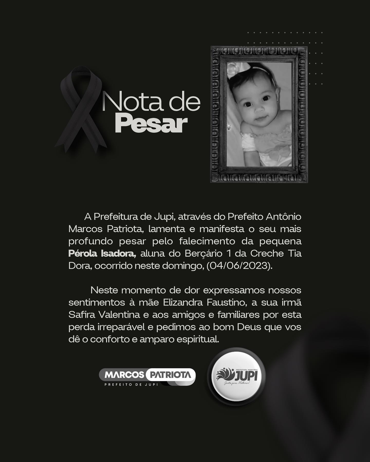 Em nota publicada nas redes sociais, a Prefeitura de Jupi lamentou a morte da menina, que era aluna do berçário da Creche Tia Dora.