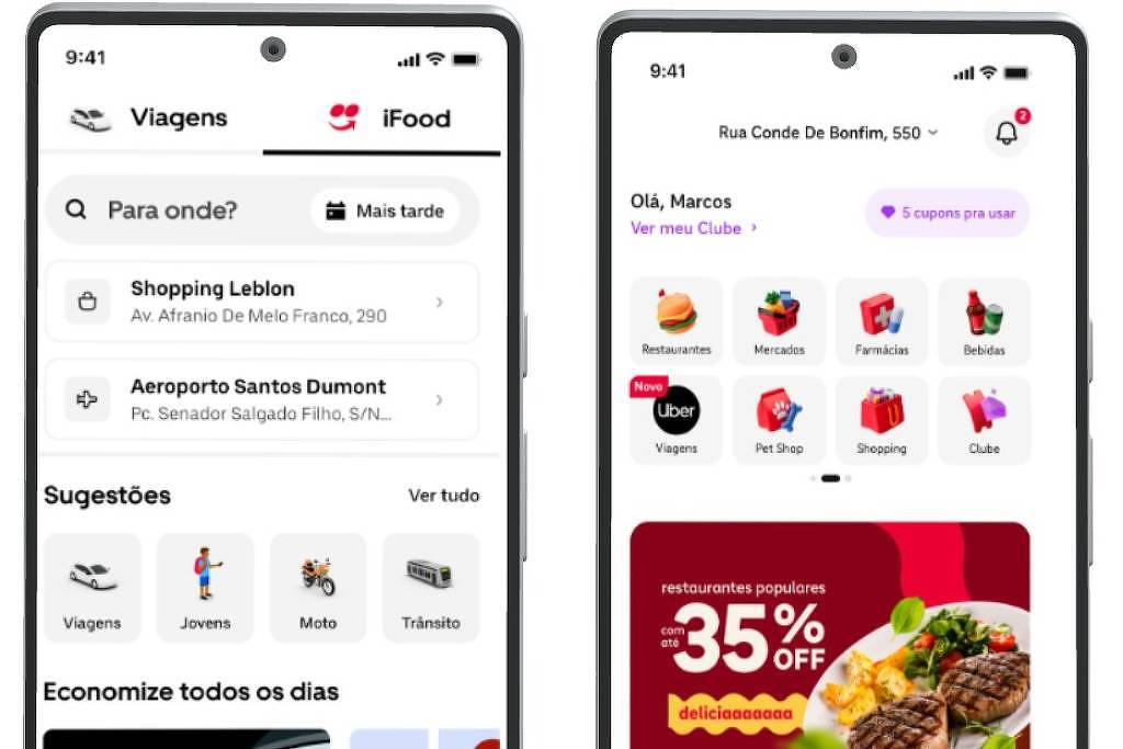 Por meio da parceria, os usuários do iFood poderão solicitar corridas da Uber diretamente do aplicativo de conveniência, enquanto os clientes da Uber terão acesso aos serviços de entrega de comida, mercados, farmácias do iFood em uma aba específica.