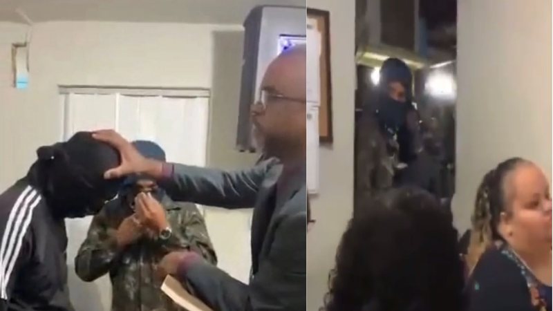 O vídeo viral em que um suposto traficante entra em uma igreja evangélica e pede a um pastor orações antes de participar de uma guerra com uma facção rival é um trecho de uma peça de teatro.
