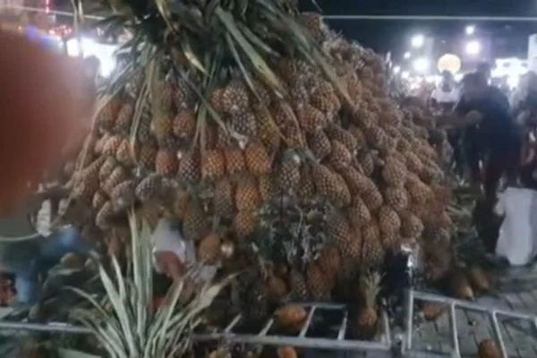 Uma escultura gigante de abacaxi desabou sobre o público na tradicional “Festa do Abacaxi” em Pombos, no interior de Pernambuco