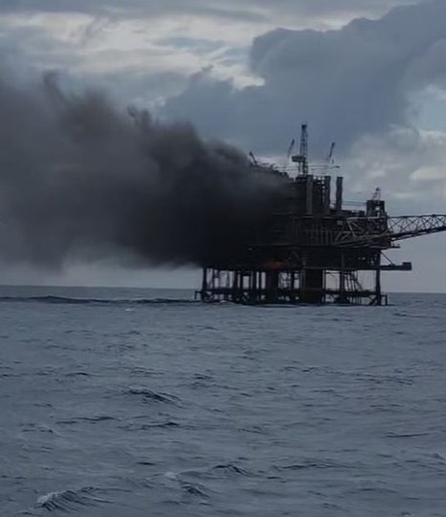 Plataforma de petróleo na Bacia de Campos pegou fogo — Foto: Reprodução/ redes sociais