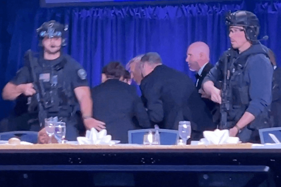 Um vídeo mostra o momento em que o presidente dos Estados Unidos, Donald Trump, foi retirado às pressas de um evento com jornalistas na Casa Branca, neste sábado (25). Após disparos de arma de fogo serem ouvidos durante o jantar, que acontecia no Hotel Washington Hilton, agentes do serviço secreto retiraram o presidente do local.