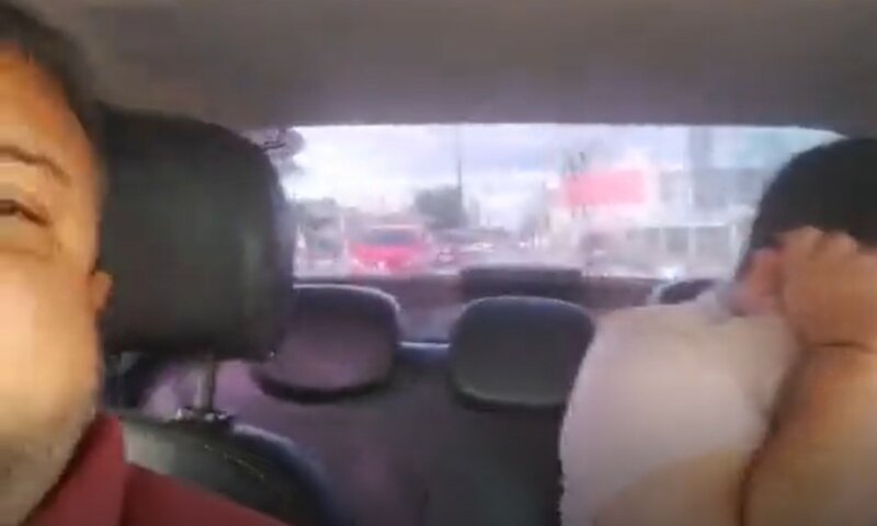 No vídeo, é possível ver o motorista, com o passageiro dentro do veículo, falando que estava se dirigindo à delegacia. Então, o cliente chama o trabalhador de estúpido e clama por socorro.