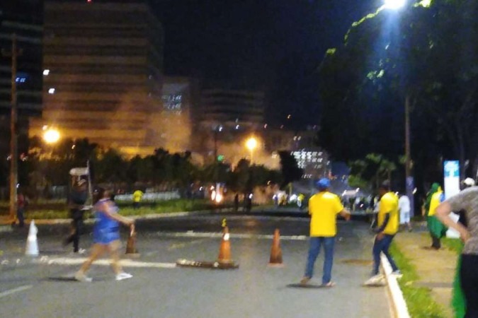 Na gravação, feita por um bolsonarista no meio da confusão, o manifestante reclama do uso de tiros contra o grupo. Nesse momento, o militar chega questionando: “o senhor tá fazendo o quê aqui?”.