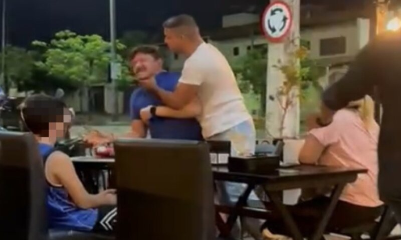 Um vídeo gravado por outros clientes do restaurante mostra o momento em que o agressor dá um soco e em seguida aperta o pescoço da vítima.