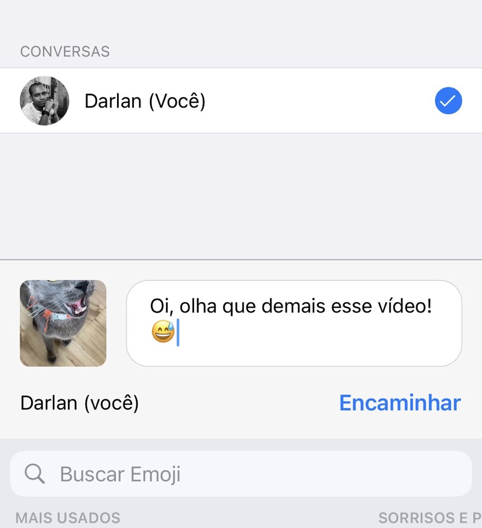 Encaminhamento de vídeo no WhatsApp com nova legenda — Foto: Reprodução/WhatsApp